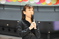 ぴちょんくんとコラボしたスマート電気自動車の名前である「Smarpy」は公募で決まったもの。お披露目会では、ダイキン工業のCMに出演する三根梓さんがプレゼンターとなり、名付け親に賞品を手渡した。