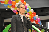コラボレーションカーのお披露目には、コラボレーション企業の代表として、メルセデス・ベンツ日本 代表取締役社長 上野金太郎氏、ダイキン工業 執行役員 空調営業本部長 坪内俊貴氏、ナレッジキャピタルを運営するKMO 代表取締役社長 間渕豊氏が登壇。スマート電気自動車の詳細な説明は、メルセデス・ベンツ日本 スマート ブランドマネージャー 島川杏子氏が行ったほか、グランフロント大阪で、ガソリン版スマートとスマート電気自動車のカーシェアリングサービスを行う、オリックス自動車 レンタカー営業本部 副本部長 池田学氏は、スマートによるカーシェアリングの実績を解説した。