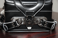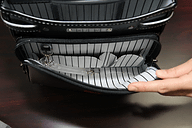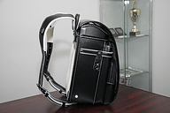 STIが作るランドセルである以上、安全性や耐久性に配慮してあり「このランドセル STIバージョン 2012は、取っ手の部分をはじめとして各所にリフレクター(反射材)を取り付けてあります。また、ランドセルの各所に打たれている鋲に関しても、反射鋲を使用しており、多様な角度からの光を反射するものになっています」(坪川さん)と語る。また、耐久性については、近年は6年間ランドセルを使おうという流れがあり、それを意識して、素材にはクラリーノ製のものを使用。ベルトも長めの9穴ベルトとなっているほか、ベルトとランドセル本体の結合部に可変機構を採り入れている。これにより、身長160cm以上の坪川さんでも使えるものになっているほか、軽い仕上がりのため、小さな子供の使用においても負担がない。