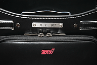 | 各部にリフレクターが配置される | ブラックのSTIロゴ | イニシャルとシリアルが刻まれるプレート。製品版では「00/50」という通しナンバーが刻まれる |