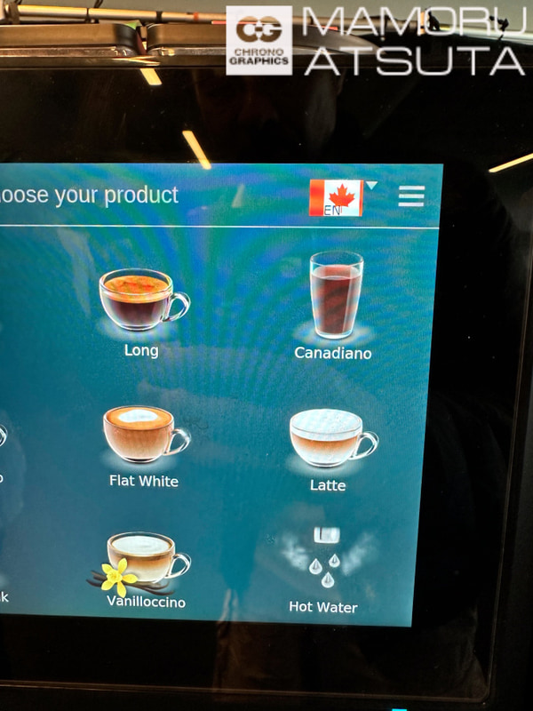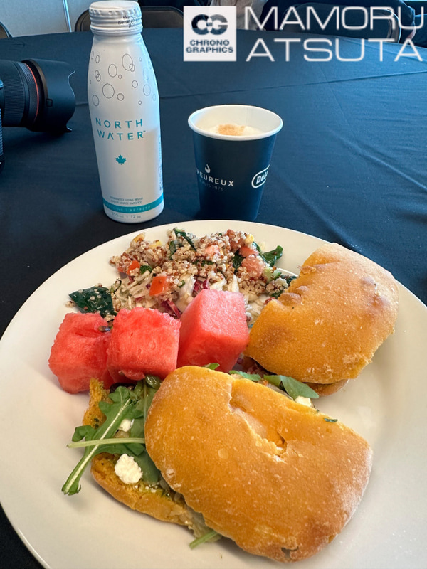 メディア向けのケータリング。一番びっくりなのが、コーヒーマシンでカナディアーノという選択アイコンがあるんです。アメリカーノが飲みたかったので、係のお姉さんに聞いてみたのです。