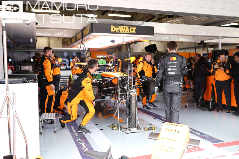 日曜日、レース前のピットレーンオープンの30分くらい前にピットレーンに行ったとき、ノリス選手のマシンで作業を始めていました。