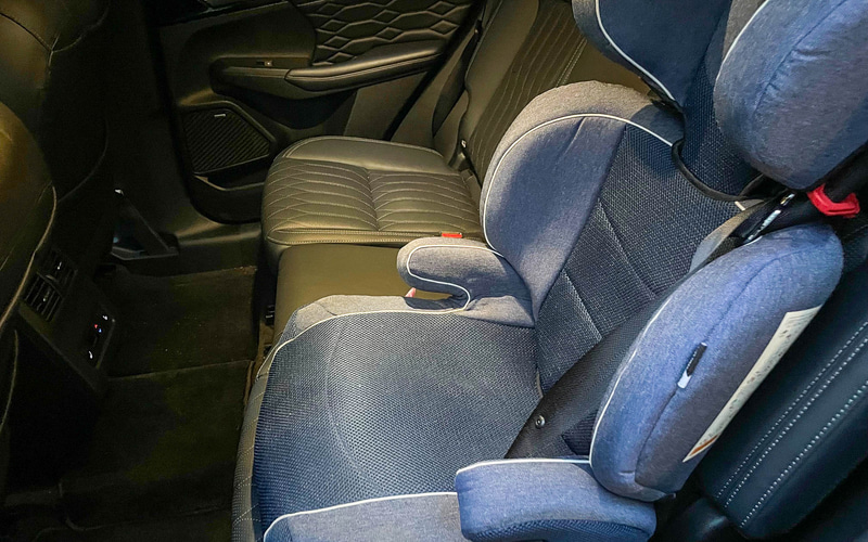 アウトランダーには長女家族と同乗だったので、後席は私たち夫婦とジュニアシートにちょこんと座った孫と一緒だ。5人乗りとはいえ、ほとんどの乗用車がそうであるように、後席は2人を想定してデザインされている。