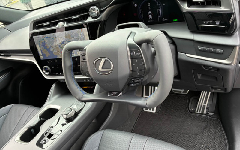 さてレクサス・RZに搭載されたステア・バイ・ワイヤは、転舵角200度に設定されて半回転で完結する。当初のプロトタイプはもう少しピーキーだったと思うが、さすがに量産車は自然で何より翼型ハンドルは見た目のインパクトが大きく期待も高まる。