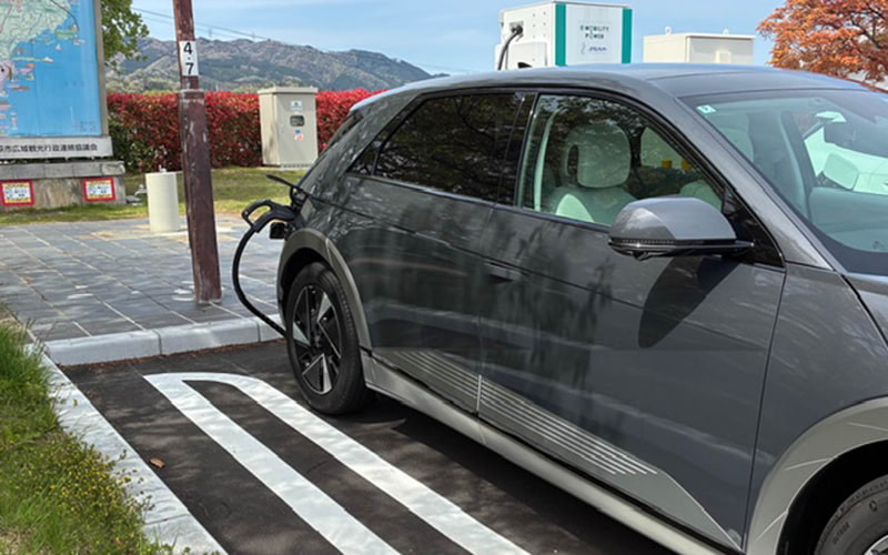 ヒョンデの中でもアシの長いアイオニック5 Loungeを貸してもらった。84kWhのバッテリ容量があり、航続距離はWLTCモードで703kmと長い。