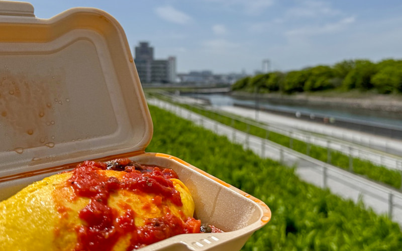 この日は、トイプードルの看板犬・廉(レン)とともに姪っ子2人もお手伝いに来ていて、娘はカフェでテイクアウトしたアサイーボウルやスムージーを、姪っ子たちと一緒にピクニック気分でほおばったりして、嬉しそう。ランチには、私の地元である千葉県船橋市で人気のオムライスが美味しいお店「hygge」が運営しているキッチンカー「うまいもんブラザーズ」でオムライスをテイクアウト。豊洲と有明を隔てる水辺のベンチに座り、レインボーブリッジを眺めながらいただくという、都心のアウトドアを楽しみました。