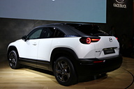 東京ビッグサイト南1ホール(SP04)にあるマツダブースで10月23日に実施されたプレスカンファレンスで、初の量産電気自動車(EV)となる「MX-30(エムエックス・サーティ)」のワールドプレミアが行なわれた。
