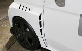 ワイドボディを際立たせるフロントスポイラーとワイドフェンダーに加え、力強い5本スポークの鍛造アルミホイール、大型のドライカーボン製テールゲートスポイラー、ダクト付きボンネットにいたるまで、機能を詰め込んだスパルタンなビジュアルに仕上げている。