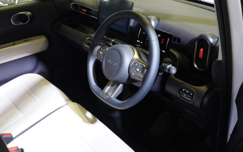 ブースではBYDのラインアップが展示される。軽EV「RACCO」については間近で見ることができるだけで車内への乗り込みはできないが、現行車種のドルフィン、ATTO3、シール、シーライオン6、シーライオン7については乗り込みも可能。インテリアや座り心地などを試すことができる。