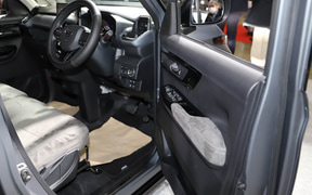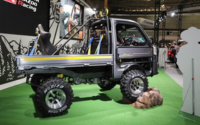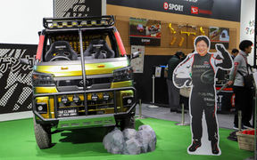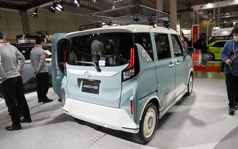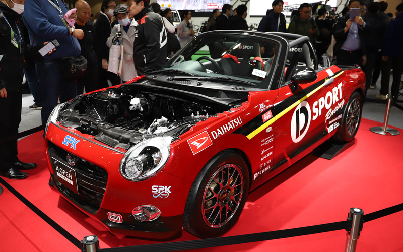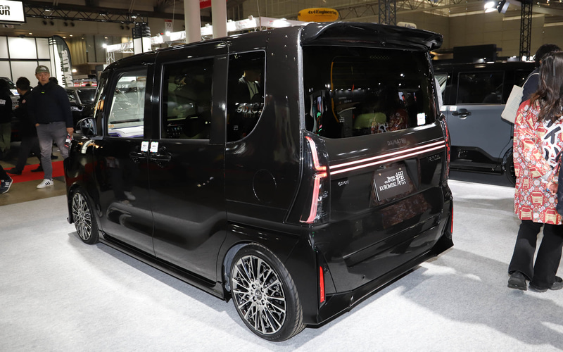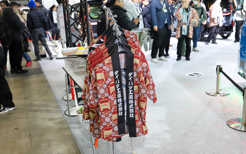 ハイゼット トラックのデコトラ「ハイゼット トラック PTO ダンプ 大発命(ダイハツメイ)」。リアのパネルには描き起こしの歴代ハイゼットが並び、オリジナルデザインのステアリングカバーで輪投げができるようになっている 内装に用いられている金華山生地と同じデザインのハッピを着て記念撮影ができる 荷室をスライドして拡張できる「ハイゼット トラック パネルバン EXTEND3」。アウトドアや休憩など、さまざまなシーンで活用できるようになっている ダークトーンでシックな印象の「ムーヴ クロメキ」。光るフロントグリルとリアガーニッシュが特徴的 シートカバーなどにベロア調の生地を用いているほか、オプションのピアノブラックパネルも各所に装着している 軽自動車でも圧倒的な存在感を放つ「タント カスタム クロメキ」。印象の強いフロントグリルが特徴 モノグラムのダッシュボードやホワイトの内装が華やか “気軽なお出かけ”をカジュアルな内外装で表現した「ムーヴ #ootd(オーオーティーディー)」 ちらりとこちらを見ているダイハツロゴのタグが付いたテディベアが愛らしい。内装はデニム調でまとめられていて軽やか また、先行スタディ車の「K-OPEN ランニングプロト2」や、SPKが市販を予定しているコンプリートカー「ミライース tuned by D-SPORT Racing」を初公開。実際にモータースポーツに参戦した「ミラ イース 10時間耐久レース参戦車」や「ロッキー ラリー参戦車両」も展示している。