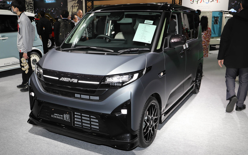 ダイハツ工業は、コミュニケーションワードの“わたしにダイハツメイ。小さいからこそできること。小さいことからひとつずつ。”のもと、来場者に既存車の新たな一面を見せるようなカスタマイズカー「ハイゼット トラック PTO ダンプ 大発命(ダイハツメイ)」「ムーヴ クロメキ」「タント カスタム クロメキ」などを出展している。