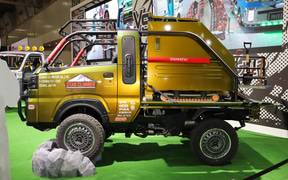 TOYOTA GAZOO Racingとダイハツが「軽トラ対決」! TOYOTA GAZOO Racingがプロデュースしたピクシス トラック。荷台にシートが設置されている 軽トラ対決のためにダイハツがプロデュースした「ハイゼット トラック ジャンボ スタークライマー」。「ハイゼット トラック ジャンボ」の駆動力、登坂力を向上させつつ荷箱を追加することで、仕事から趣味、災害支援でも活躍できるモデルとした