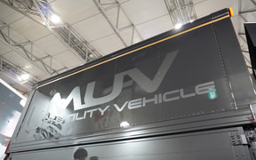 まず、いすゞA&Sの可知雅博氏が紹介したのが「ELF MULTI UTILITY VEHICLE」。略してMUVと呼んでおり、日本フルハーフとの協業により、小型トラックのエルフにウィングバーを架装し、庫内空間の可能性を広げるクルマにしたもの。