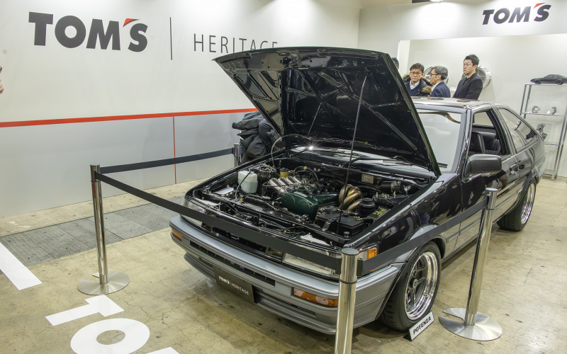 トムス、現代の技を活かすレストア事業「トムスヘリテージ」で仕上げたAE86レビン展示中