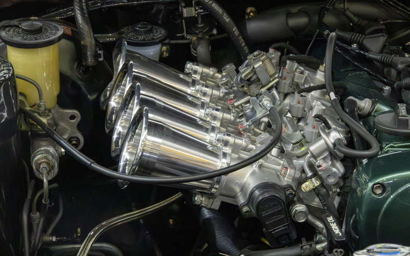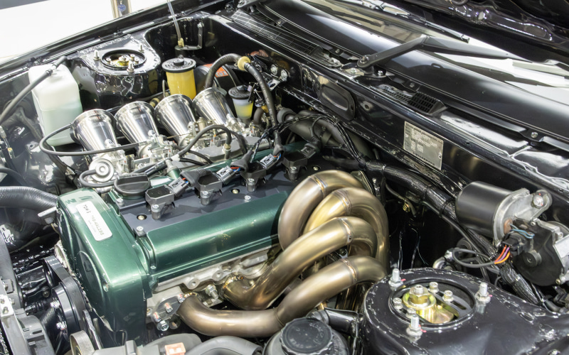 エンジン内部はVVTを取り外したうえでハイカムに交換。腰下も全て手が入った仕様となる。ちなみにTOM'S HERITAGEではエンジンスペックを3種類用意していて、もっともベーシックなのが標準オーバーホール+αの「Aスペック」。次にAスペックをトムスが厳選したパーツでチューニングを施したパフォーマンス版の「Bスペック」、最後はユーザーに合わせて仕様を決めるオーダーメイドエンジンの「Cスペック」となる。