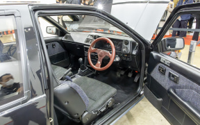 インテリアでのポイントはシート。現存するAE86ではシート交換されている車両も多いが、トムスの見立てではAE86純正シートのサポート性もそれなりに優れているので、ストリートメインであればサポート性能は十分あるとのこと。