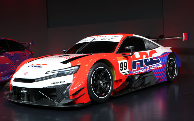 2026年デビューのスーパーGT GT500クラス参戦マシン「プレリュードGT」は、2025年9月にカラーリングされる前のフルカーボンの状態で公開され、10月にはテスト走行も実施している。今回オートサロンに合わせて赤青白のHRCカラーに仕上げられた状態が初披露された。