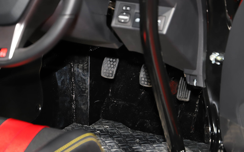 安全・安心が大事なので、車内にはしっかりとしたフットレストを設けて、適切なドライビングポジションを確保しています。低く座ってフロアを上げて、自然に遠くが見渡せるポジションを目指しました。その視界を確保するために、ボンネットとインパネの高さを下げ、周囲を見やすくしています。これによりAピラーを寝かせられるようになり、結果としてルーフが小さくなり、屋根が畳みやすくなるという合理的な設計になっています。