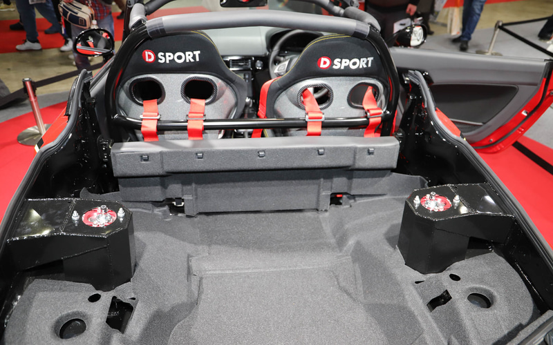 ただ、クルマの完成度としては、時間切れでボンネットもトランクも間に合いませんでした。当初は展示自体を諦める話もありましたが、クルマ好きの皆さまのご意見を伺える貴重な場であるため、どうせ開けるボンネットやトランクはいらない! 不要である! そう割り切って、出展に至りました。