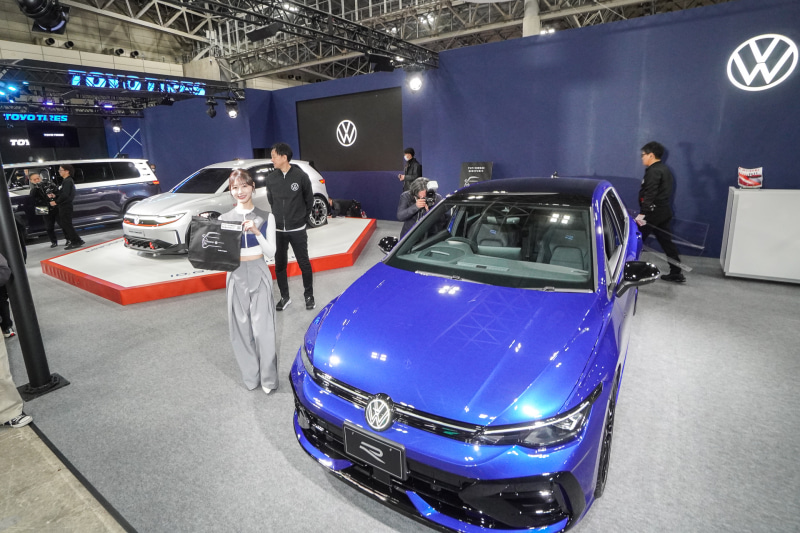 フォルクスワーゲン グループ ジャパンは東ホール8にブースを出展し、「ID.GTI Concept」(アイディー ジーティーアイ コンセプト)を国内初披露した。これに加えて、「東京オートサロン2025」でデビューした「ゴルフ」のハイパフォーマンスモデル「ゴルフ R」に、ブラックカラーの専用アイテムや特別装備を装着した「ゴルフ R ブラックエディション」、フル電動ミニバン「ID.Buzz」の計3台が展示されている。