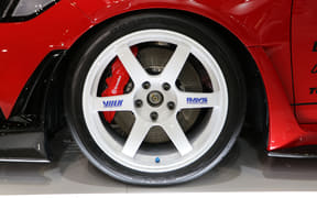 レイズブースでは、初代TE37を展示しているほか、現行モデル「TE37 SAGA S-plus」をベースにした30周年記念モデルの展示を実施している。また、ブースに展示されている赤いシビックTYPE R(FL5)にも装着されているので、実際の装着スタイルも確認できる。