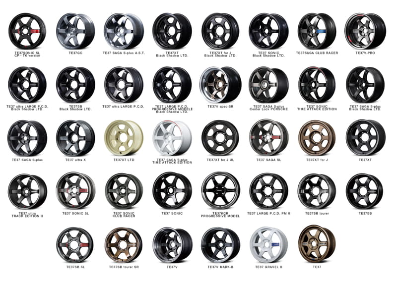 TE37は、軽量かつ高剛性というスポーツホイールの理想を追求し続け、数々のストリートやサーキットシーンで確固たる地位を築いてきたモデルの1つ。モデル名の「TE37」は、「Touring Evolution」の頭文字と、当時の15インチホイールとしては驚異的だった1本約3.7kgという重さが由来となっている。