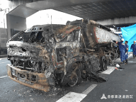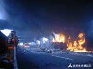 タンクローリー火災事故発生直後の状況