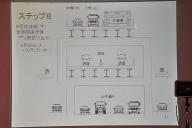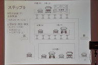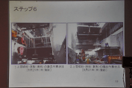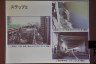 会見会場では、5号池袋線での事故発生から全面開通までの復旧工事の模様が10ステップの課程に分けて説明された