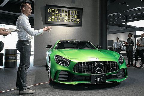 メルセデス・ベンツのモデルだけでなく、AMGモデルの販売も好調。今年の1月には世界初のAMG専売拠点であるAMG 東京世田谷がオープン。AMGパフォーマンスセンターは全国で38カ所ある 上野氏は続けて「1967年に始まったAMGは本年で創立50周年を迎えます。先日、AMG50周年の目玉の1つとして、メルセデスAMGの頂点に位置するメルセデスAMG GT Rを発表させていただきました。そのときはプレスリリースのみでの発表でしたが、本日はGT Rも展示してあります。AMG50年の歴史ですが、AMGは“モータースポーツこそが技術力の優秀性を何より端的に示す”という確固たる信念を基本に1967年に設立しました。当初はレース用エンジンの設計、デザイン、テストベンチを兼ねた小さなオフィスでした。転機は1971年、スパ・フランコルシャン24時間耐久レースで、300SEL 6.8というメルセデスのセダンに彼らが製作したエンジンを搭載。そのクルマが初出場にも関わらずクラス優勝を成し遂げたことです。この勝利によりAMGのエンジンが高性能であるということが証明され、AMGの名前がヨーロッパに広まりました」。