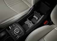 具体的には電動パーキングブレーキの採用により、センターコンソールはより洗練されたデザインへと進化するとともに、新たにアームレストやフレキシブルな収納スペース(マルチボックス)を設けた。これに伴い、コマンダースイッチの前出し&小型化が行なわれたほか、マルチボックスは「カップホルダー×2+小物入れ」「フリースペース×3」「カップホルダー×1+ボックス」といった、前後の仕切り板をアレンジすることで多彩な物入れ/カップホルダーとして利用できる。合わせてリアシートにも開閉式カップホルダー付アームレストを装備して快適性を高めている。