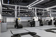 1階のピットは、全体を白と2色のグレー系のモノトーンでカラーリングして、色味を合わせた壁面什器や機材などが整理整頓された空間を保つことで、安心感や清潔感のあるピットとした。また、作業の進捗をライブで確認できる「PIT LIVE VIEW」を導入。ピット内に設置された計29台のカメラによる映像を、作業受け付け時に渡される専用のスマートフォンで見られるようにするとともに、間近で作業を見ることができる独立したウェイティングスペースを備える「PREMIUM PIT」を新設した。