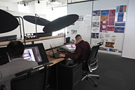 デザイナーは、ワークステーションやタブレットで設計が可能。フリーハンドでスケッチなどを行なうほか、図にしていく作業もここで行なう。スクリーンに投影することもでき、大人数で見ながら作業を進めることもできる。