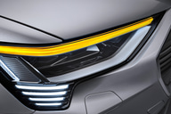 e-tron Sportbackに新採用された「デジタルマトリクスLEDヘッドライト」では、ビデオプロジェクターなどにも使用される「DMD(デジタルマイクロミラーデバイス)」の技術を搭載。100万個のマイクロミラーを備えた小さなチップを中核としており、静電界を利用してエッジ長がわずか数百分の1mmというマイクロミラーの角度を最大5000回/秒調節。これにより、路面や壁などにヘッドライトの光で文字や図形を表示できる。アウディではこの技術について「量産車で初めて利用できる新しい機能」としている。