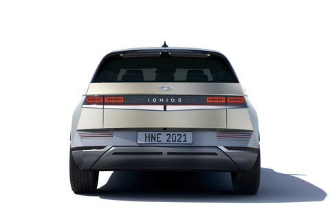 IONIQ 5のエクステリアデザインは、同社初の量産車「ヒュンダイ ポニー」をイメージさせるもので、ボディサイズは4635✕1890✕1605mm(全長✕全幅✕全高)、ホイールベースは3000mm。3000mmのホイールベースよって、独自のプロポーションを与えるとともにDセグメントなみの室内スペースを提供するという。
