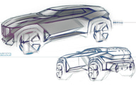ルーフの色は、Aピラーのブラック・フィニッシュとコントラストを形成。また、Aピラー上部の屋根には、スリムなLEDサーチライトが組み込まれるほか、ボンネットにあるエアインテークは、ルーフのLEDサーチライトを模したもので、ダイナミックな印象を付与。堂々としたボディの下端には、すっきりとしたブラックのフロントエプロンが配され、外周部のボディカラーの三角形のブレードは、垂直に配置されたエアインテークを強調するとともに、コンセプトXMのスポーティで堅牢なスタンスを強調している。