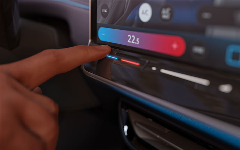 新たなエアコンにはさまざまな機能が搭載され、ドライバーが鍵を持って近づくと、ドライバーが乗り込む前に夏の暑い日には車内を冷やし、寒い日には車内を暖めることが可能。また、新設計の「スマートエアベント」は、ダイナミックに動いて広い面積にすばやく空気をいきわたらせるほか、同乗者がいる場合は、空気を直接体に当てたり、間接的に室内を換気したりも可能としている。
