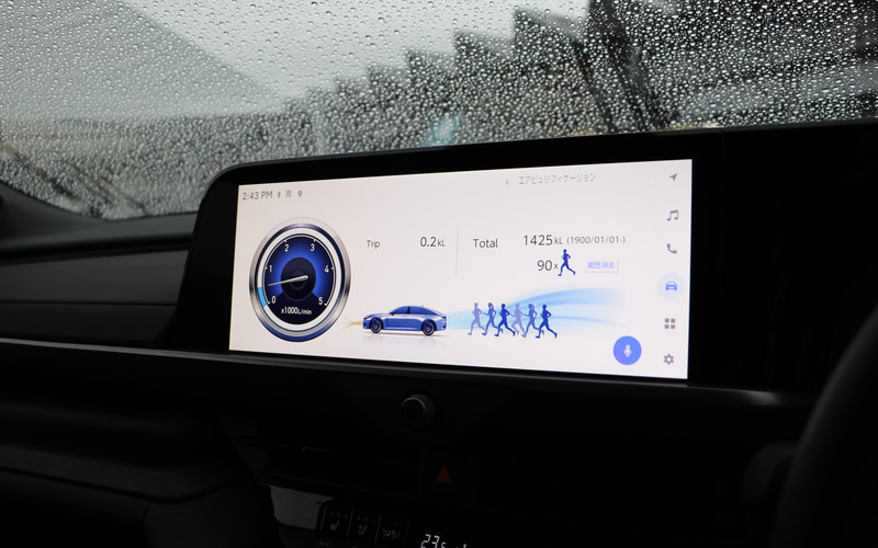 また、アクセルを踏んだ瞬間からトルクが立ち上がり、スムーズに伸びるFCEVならではのパワーと、モーター駆動ならではの静粛性や乗り心地を両立した。さらに、ショーファーニーズに応えるために、ホイールベースを3mに設定。足下のスペースを広くし、足抜きしやすいスムーズな乗り降りを実現することで、後席のゆとりを創出している。