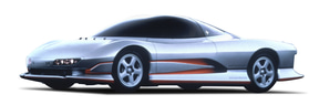 「HSR-II」。1989年の東京モーターショーに参考出品。V型6気筒DOHC3.0リッターツインターボエンジンを搭載し、速度域で可変するアクティブエアロシステム、フルタイム4WD、4輪ABS、4輪操舵、4輪独立懸架式サスペンションといった四輪制御技術、追尾走行や自動車庫入れ機能などの運転支援技術を採用したコンセプトカー。搭載技術のいくつかはのちの三菱車に採用された