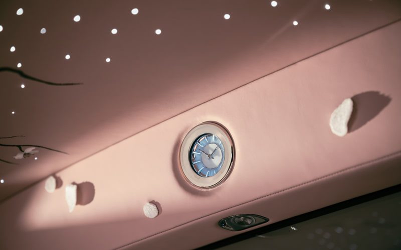 お花見のテーマは、ドア内に格納されたの傘の生地の内側にも舞い落ちる花びらのモチーフとしてあしらったほか、アークティックホワイトにクリスタルを重ねたボディには、後部座席のドアの中ほどまで優雅に細くなる特徴的なコーチラインが手描きで施され、繊細な桜の花のモチーフが添えられている。
