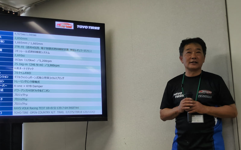 小菅社長は、「ランクル250を使って全日本ラリーに挑戦したいと、ドライバーの三浦選手と一緒にTOYO TIREさんへお願いしにいったら、即答で了承していただき大変うれしかったです。しかし、車両がなかなか納車されなかったため、この日を迎えるのに3年かかってしまいました」と、ここまでの足どりを振り返った。