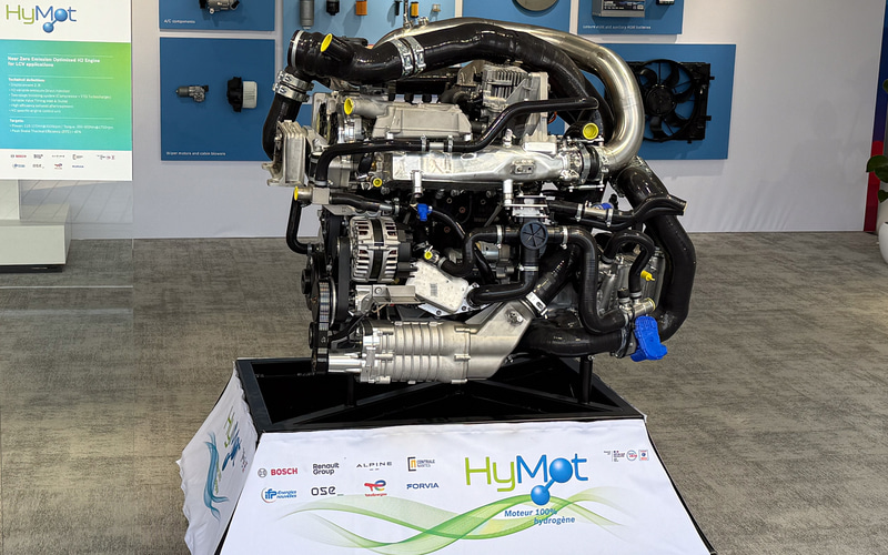 このル・マンでもそうしたモータースポーツ用ECUなどの展示を行なっていたほか、ディーゼルエンジンを水素燃焼エンジンにコンバージョンしたエンジンを展示。展示エリアの中央に設置するなど力を入れていた。