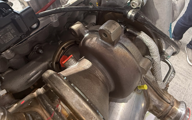エンジンの仕様としては、2.3リッター直列4気筒の直噴エンジン。コンプレッサーとターボチャージャーの2ステージブーストシステムを搭載し、最高出力110-125kW/3500rpm、最大トルク360-400Nm/1750rpm発生する。前述したようにディーゼルエンジンをコンバージョンしたもので、空気供給量を大幅に上げるなどの工夫が行なわれている。