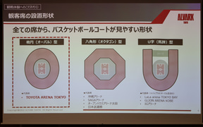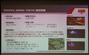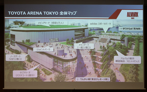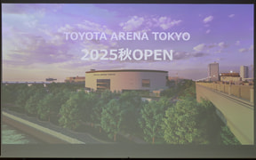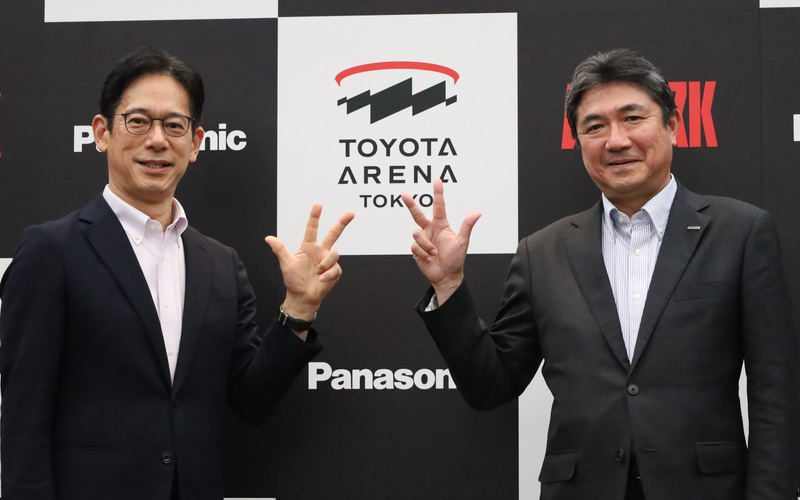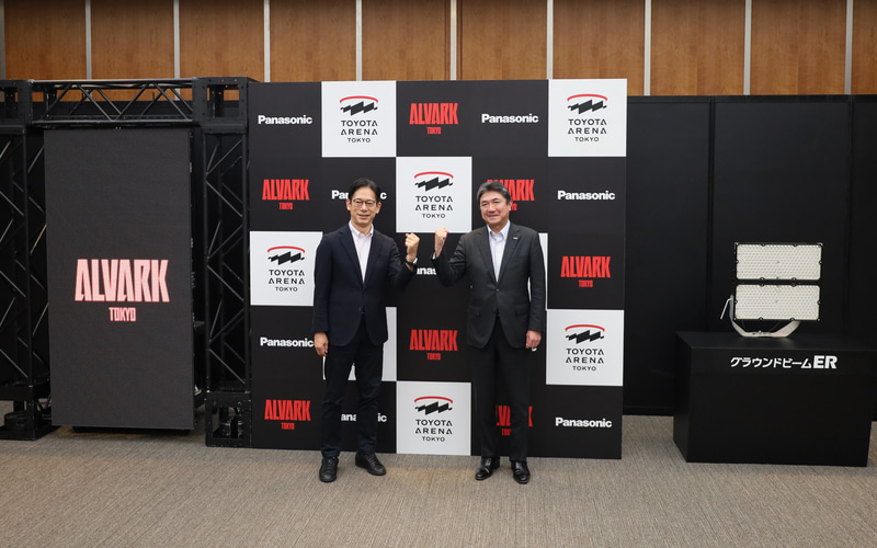 発表会には、トヨタアルバルク東京 代表取締役社長 林邦彦氏、パナソニック エレクトリックワークス社 副社長 マーケティング本部 本部長 稲継哲章氏が登壇して、国際標準のアリーナの実現に向け「TOYOTA ARENA TOKYO」に、国際バスケットボール連盟(FIBA)の認証を受けている最先端照明器具を設置するなどパナソニックの製品や演出ノウハウを取り入れることが明かされた。