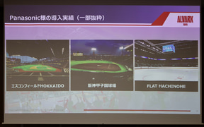 パナソニックのスポーツビジネスの実績としては、「阪神甲子園球場」「国立競技場」「FLAT HACHINOHE」「東京ドーム」「パナソニックスタジアム吹田」「ベルーナドーム」「味の素スタジアム」「エスコンフィールド HOKKAIDO」「沖縄サントリーアリーナ」「OPEN HOUSE ARENA OTA」「LaLa arena TOKYO-BAY」といったスポーツ施設に、照明設備、音響設備、映像設備、サイネージ、「KAIROS」など演出・制御システムといたソリューションを持つ。