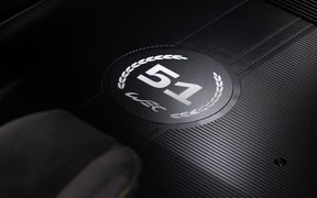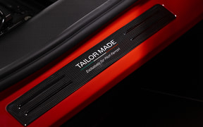 レーシングタイプのシートは、黒いアルカンターラやドライビングスーツにも使用される耐火性ファブリック素材を採用。また、カスタム可能なカーボンファイバー製のドアシルなども配されている。