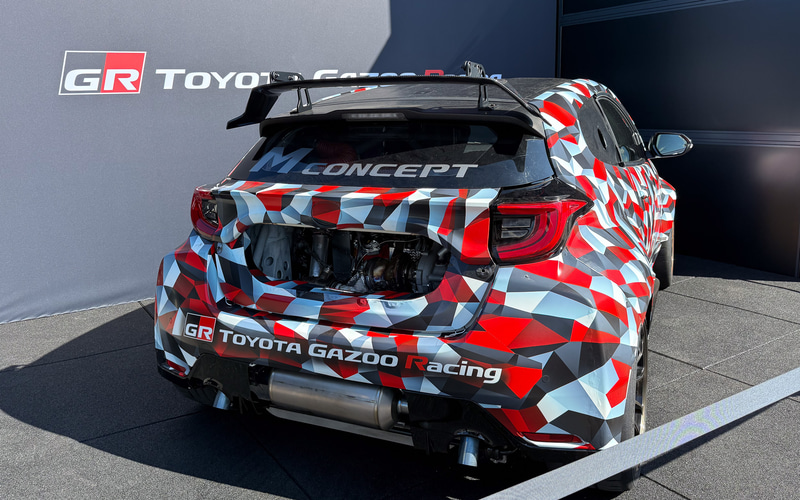 現在のGRヤリスではフロントエンジンの4WDであることから、開発ドライバーでもあるモリゾウ選手(豊田章男会長)が「神に祈る時間」と表現するパーシャル領域がコーナリング中に存在する。この時間を減らすためにミッドシップ化、GRヤリスMコンセプトは今シーズンのスーパー耐久でデビューする予定だ。