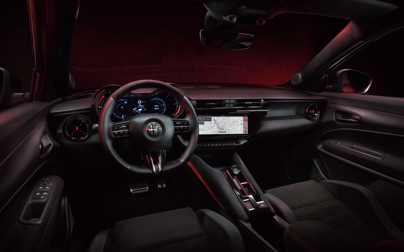 さらにジュニア イブリダ スペチアーレはラインアップの最上位にあたるモデル。アルファ ロメオの象徴である「スクデット」(盾グリル)が、BEVモデル同様にプログレッソ・デザインとなるほか、サンルーフ、マットブラック&レッドインサートボディキット、レザー&アルカンターラステアリングホイール、サベルト製スポーツシートが用意される。