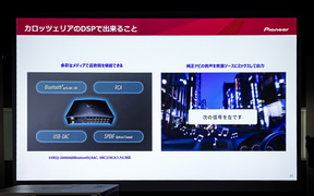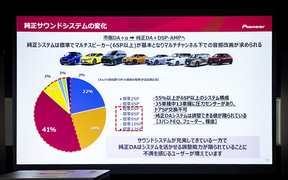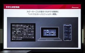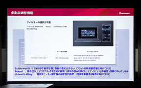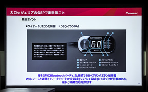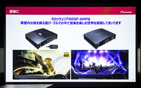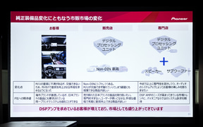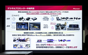 最後に東北パイオニア 事業企画部市販企画課の松下寛氏が登壇。車内のAV環境は昨今、車両の技術革新とともにディスプレイオーディオ化が進んでおり、利便性が高まっている半面「音場を自由に調整するというお客さまの楽しみ方が少しずつ失われつつある」と危惧していると前置き。そんな状況を打破するために純正のディスプレイオーディオを維持したまま音質改善が可能なデジタルプロセッサー(DSP)を提案、「音を自ら作る楽しさをわれわれは提供したい」と述べた。