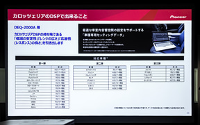 また、調整機能が多いことから簡易的に調整が可能なスマホアプリと、多彩な調整機能に対応したWindows対応の「DSP Controller」(無料)を用意。また、DEQ-2000A向けには簡易的な車種専用セッティングデータを提供することで、「カロッツェリアDSPの持ち味である低域の安定性、レンジの広さ、レスポンスの良さをすぐさまご体験いただける」とコメント。「カロッツェリアのDSPは車室内の音を作る喜び、クルマの中での音楽を楽しむ世界観、そういうものを提案していきたい」と締めくくった。
