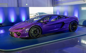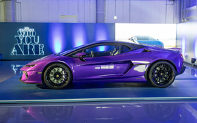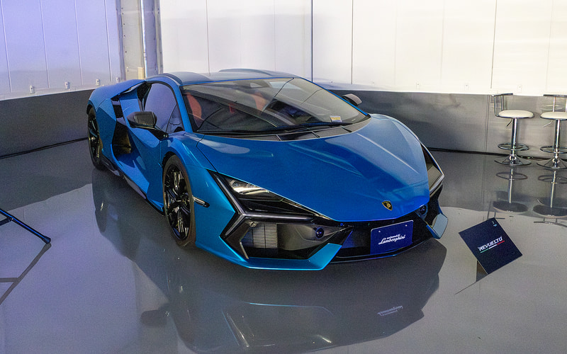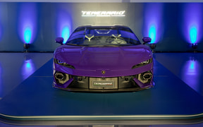 建屋内には世界市場に導入間近であるランボルギーニのHPEV(ハイパフォーマンスEV)、「テメラリオ(Temerario)」を展示。テメラリオはV型8気筒4.0リッターツインターボエンジンに3つの電気モーターを組み合わせ、合計の最高出力は920CVを発生。搭載するV8ツインターボエンジンは量産型スポーツカー向けとして、初めて最高回転数が1万回転に到達したという。